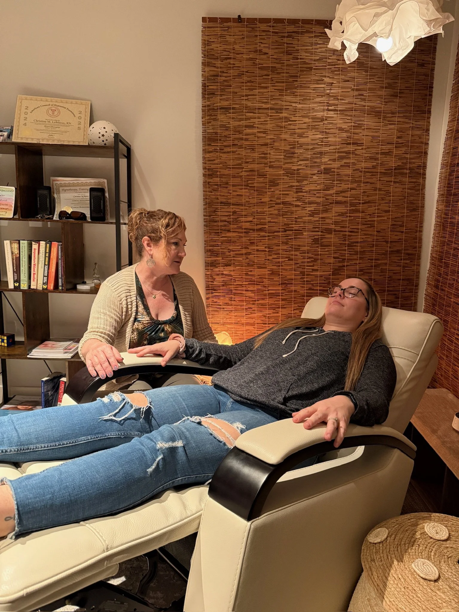 Christina welcomes clients of all ages, persuasions, and backgrounds and is excited to guide you in gently transforming the landscape of your own mind to change your life for the better, starting today!